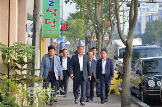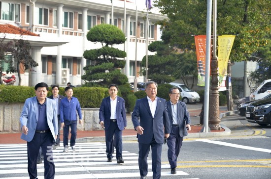 ▲ 이용우군수 부여군청까지 걸어서 출근하는 장면