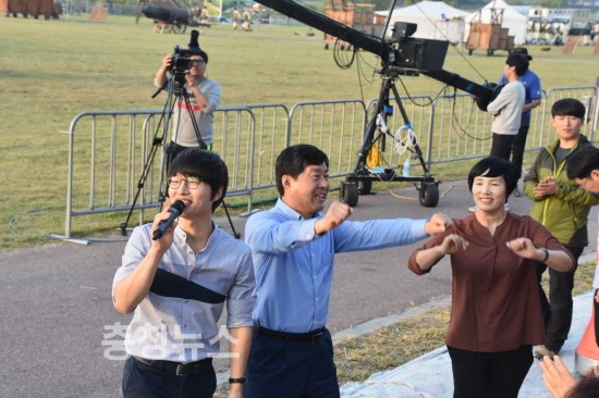 ▲ 황명선 논산시장이 시민들과 함께 율동을 펼치고 있다.