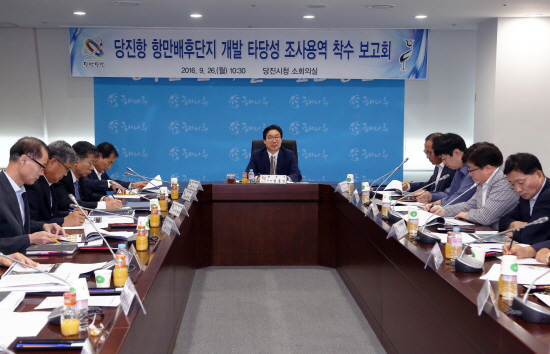 충남 당진시는 26일 시청 소회의실에서 김홍장 시장 주재로 관련 부서장과 항만 관계자 등이 참석한 가운데 ‘당진항 주변지역 항만배후단지 개발 타당성 용역’ 착수보고회를 개최했다고 밝혔다.