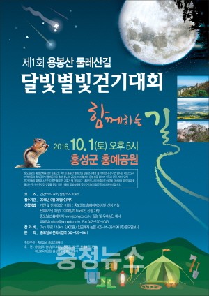 충남 홍성군체육회와 중도일보가 공동 주관하는‘제1회 용봉산 둘레산길 달빛별빛 걷기대회’가 내달 1일에 개최된다고 밝혔다.