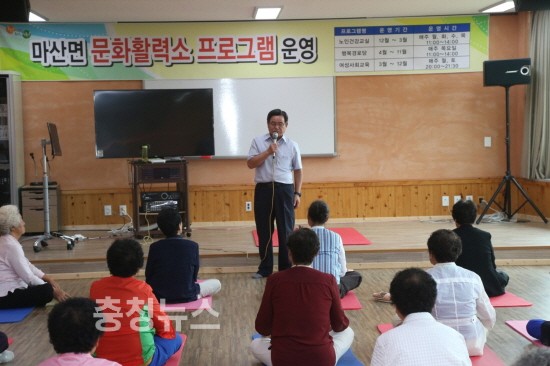 마산면 문화활력소에서 지역 어르신 60여 명이 참여한 가운데, 건강 증진과 복지 향상을 위한 간담회를 가졌다.