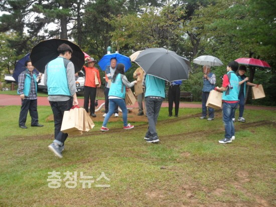 회원들은 비가 내리는 중에도 장애인 인식개선 운동 홍보 책자와 장애 이해 교육 영상물 등을 나누어 주는 사회봉사 활동을 실시하였다.