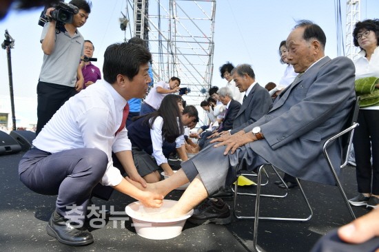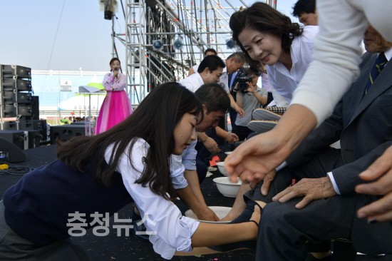 기념식에 이어진 세족식에서는 황명선 시장, 김형도 시의회의장, 도의원, 시의원 이 효도하고 웃어른을 섬기는 마음을 담아 어르신들의 발을 직접 닦아드리는 시간을 가져 효 실천 분위기를 고조시켰다.