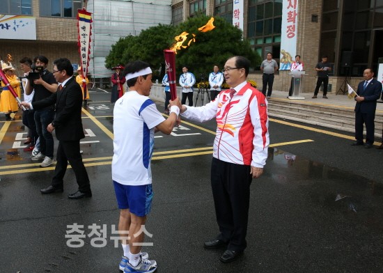 이날 행사는 대치면 주부풍물단의 식전행사를 시작으로 성화봉송 단장으로부터 성화를 인계받아 다시 이석화 군수와 이기성 의장이 성화봉송 주자에게 인계하는 순으로 진행됐다.
