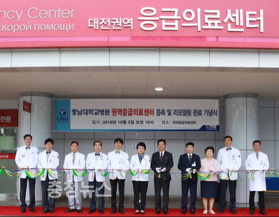 충남대학교병원(원장 김봉옥)은 10월 5일 권역응급의료센터 증축 및 리모델링 완료 기념식을 진행하였다고 밝혔다.