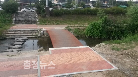 충남 천안시는 징검다리를 이용하여 하천횡단 시 불편을 겪었던 천안천 산책로에 하천을 횡단하는 목교 7개소를 설치했다고 밝혔다.