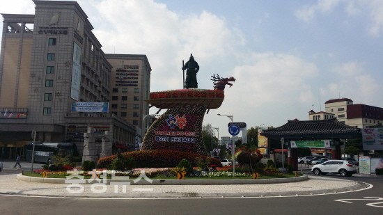충남 아산시(시장 복기왕)가 2016년 전국체전을 맞아 이순신장군을 모티브로한 대형 꽃 장식물을 관광호텔 회전 교차로에 설치하는 등 주요 도로변에 설치하여 내방객에게 특색 있는 아름다움을 제공한다고 밝혔다.