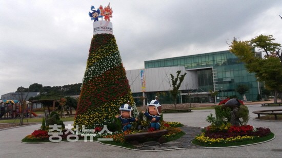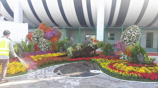 제97회 전국체전 방문객 맞이 꽃 장식물 설치