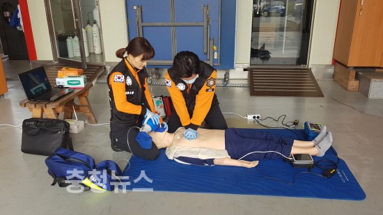 조치원 소방서 구급대는 3가지 평가에서 전국 최고의 기량을 내기 위해 구슬땀을 흘리고 있다.