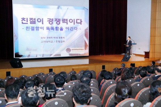 이날 홍웅식 강사는 머리에서 가슴까지 우러나는 친절 실천의 중요성을 강조했다.