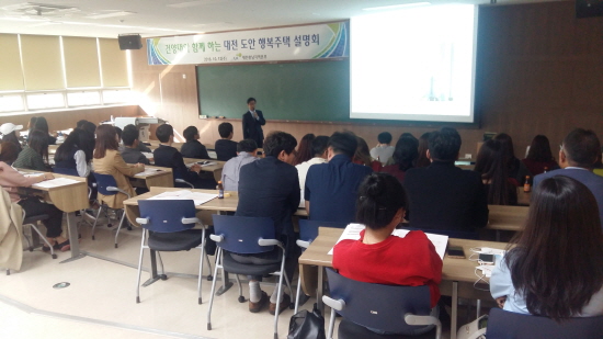 대전충남지역본부(본부장 김양수)는 대전 최초 도안 신도시 내 20블록 행복주택 공급에 맞춰 건양대학교와 함께 행복주택 설명회를 개최했다고 밝혔다.