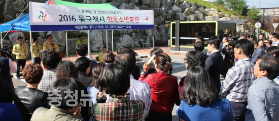 대전 동구(구청장 한현택)는 12일, 구청 1층 야외주차장에서 훈련 관계자 및 직원 등 500여 명이 참석한 가운데 2016년도 합동 소방훈련을 실시했다고 밝혔다.
