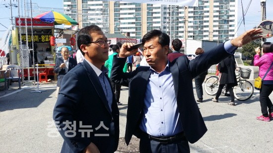 ▲ 개막행사에 분주한 주창덕 논산시청 홍보계장(왼쪽)과 조용훈 축제추진위원장