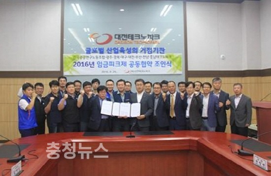 전국 18개 테크노파크 중 민주노총 전국공공연구노동조합에 가입된 7개 테크노파크(대전,경북,광주,대구,부산,전남,충남) 노사가 9월 26일 대전테크노파크 대회의실에서 임금피크제 공동협약 조인식을 열고 임금피크제 도입에 합의했다.