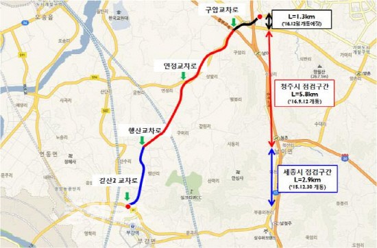 한편, 연말 준공예정인 ‘남청주IC 연결도로’ 확장공사와 ‘청주연결도로’공사가 준공이 되면 행복도시와 청주시간 이동 소요시간이 기존 30분에서 약 10분으로 20분 가까이 단축될 것으로 기대된다.