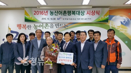 한국농어촌공사 세종․대전․금산지사(지사장 정성규)는 18일 지사 회의실에서 2016년 농산어촌행복대상 시상식을 가졌다고 밝혔다.