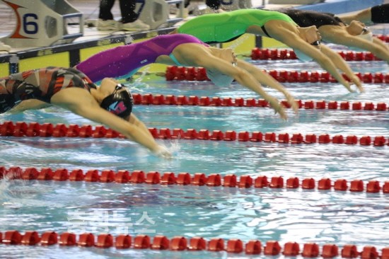 이날 수영 여자일반부 배영 200m에 출전한 임다솔(아산시청) 선수는 2분13초34로 대회 신기록을 세웠으며, 10일 진행된 배영 100m에서 경기 초반 중위권에 그쳤지만 막판 뒷심을 발휘해 1분 01초 57로 금메달을 차지했다. 이어 핀수영 여자고등부 표면 100m에 출전한 오혜영(온양여고 1년)선수는 1위로 터치패드를 끊었다.