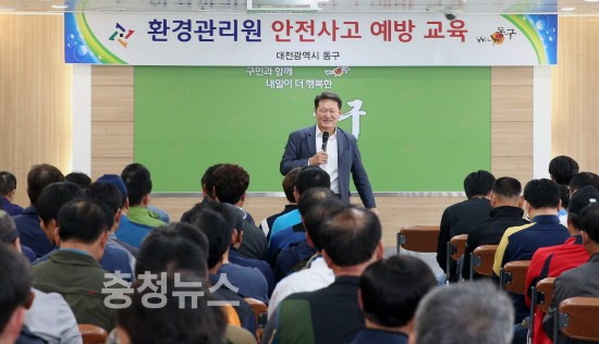 대전 동구(구청장 한현택)는 20일, 구청 중회의실에서 환경관리원 120여 명이 참석한 가운데 안전사고 예방교육을 실시했다고 밝혔다.