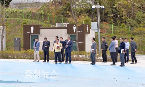 ▲ 이용우 군수 굿뜨래 웰빙마을 주요 시설 점검 하는 장면