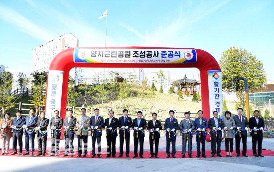 ‘양지근린공원’은 옛 충남도청 뒤편인 중구 선화동 362-97번지 일원 24,125㎡ 부지에 총 327억원의 예산을 투입, 지난해 2월 공사를 시작해 이날 준공식을 갖게 됐다.