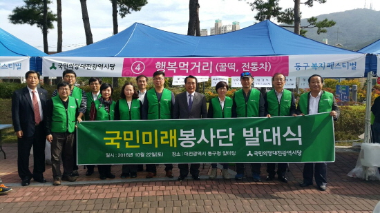 봉사활동에는 국민의당 당원이 아니더라도 대전지역의 소외계층을 위한 봉사활동에 참여하고자 하는 분들은 언제든 참여가능하다.”라며 국민미래봉사단에 대전시민의 많은 지지와 참여를 당부했다.