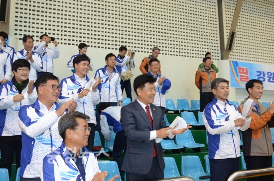 ▲ 오안영 의장을 비롯한 아산시의원 농구경기 응원에 힘입어 승리, 결승진출