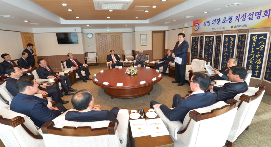 충남도의회가 25일 도의회 의장을 역임한 전임 의장을 도의회로 초청해 의정 현황을 설명하는 간담회를 개최했다고 밝혔다.