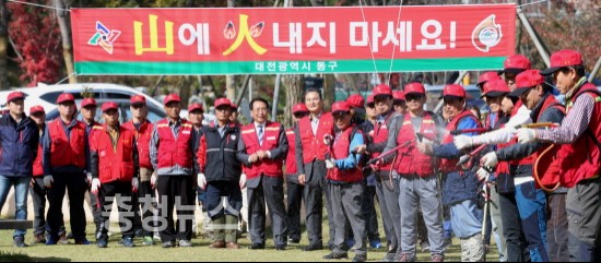 대전 동구(구청장 한현택)는 26일 식장산 인근 세천근린공원에서 가을철 산불조심기간(11월1일~12월15일)을 앞두고 동구 산불진화대 발대식을 가졌다고 밝혔다.