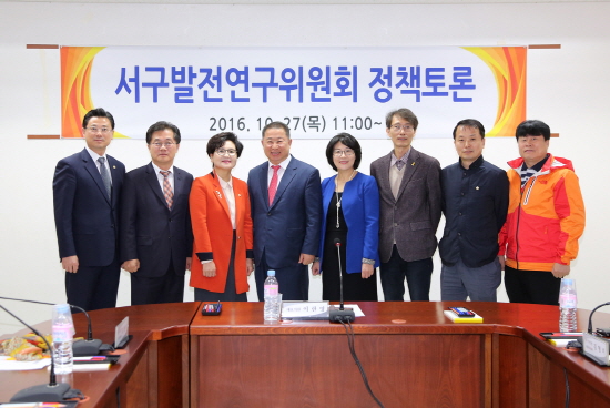 서구의회(의장 최치상) 의원연구단체인 서구발전연구위원회(대표 이한영)는 10월 27일 오전 11시, 3층 간담회장에서 정책토론회를 개최하고 질의응답, 열띤 자유토론 시간을 가졌다.