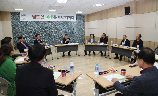 대전광역시(시장 권선택)는 31일(월) 오후 3시 대전시민대학 보문산 컨퍼런스홀에서 ‘원도심 미래를 이야기하다’를 주제로 권선택 대전시장과 단체, 시민이 참석한 가운데 원탁토론회를 개최했다고 밝혔다.