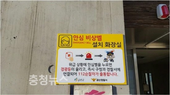 충남 금산군은 군민여성들의 안전을 위해 치안 취약지역인 공원 공중화장실에 안심벨을 설치했다고 밝혔다.
