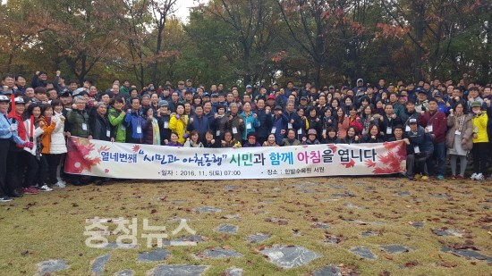 권선택 시장은 5일 대전 엑스포시민광장 분수대에서 대전사랑시민협의회가 주최하는 제14회 ‘시민과 아침동행’을 열고 550여명의 시민들과 한밭수목원을 걸으면서 소통의 시간을 가졌다.