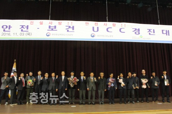 행복청(청장 이충재)과 대전지방고용노동청(청장 박형정)이 공동 주최하고, 한국산업안전보건공단 대전지역본부(본부장 정성훈)가 주관하는 제3회「2016년 건설안전·보건 유씨씨(UCC) 경진대회」가 지난 3일 성황리에 개최되었다.