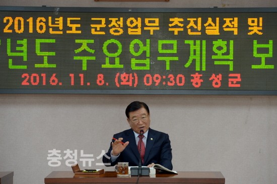 충남 홍성군은 8일부터 10일까지 회의실에서 각 실·과, 직속기관, 사업소 별로 2016년 군정업무 추진실적 및 2017년 주요업무 보고회를 추진하고 있다고 밝혔다.