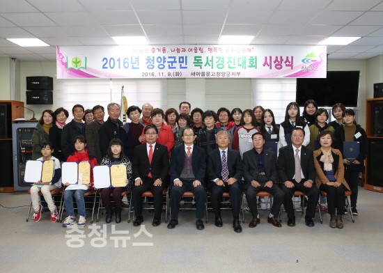 청양군민 독서경진대회는 대통령기 제36회 국민독서경진대회 시군예선대회로 초등· 고등·일반 어머니부로 나눠 우수 출품자와 우수 지도교사에 대해 시상하고 있다.