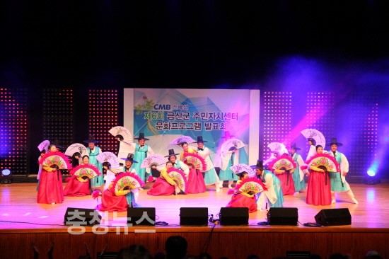 충남 금산군 주민자치센터 문화프로그램 발표회가 지난 11월 8일 금산다락원 대공연장에서 관내 기관·단체장을 비롯한 지역주민과 주민자치센터 문화프로그램 참여자 등 700여명이 참석한 가운데 화려하게 개최됐다고 밝혔다.