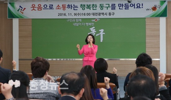 대전 동구(구청장 한현택)는 9일, 구청 중회의실에서 공무원 200여 명이 참석한 가운데 ‘웃음으로 소통하는 행복한 인생’을 주제로 역량 강화 교육을 실시했다고 밝혔다.