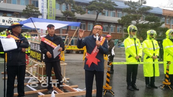 10일 오후 열리는 도시계획심의위원회에 앞서 군청 앞에서 진행된 이 날 집회에는 해당지역 마을 주민뿐만 아니라 주변 읍·면 이장협의회도 집회에 참여해 의료폐기물 추진 반대에 가세했다.
