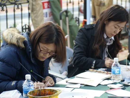 ▲ 캘리그리피(좌로부터 이명숙 캘리크라퍼, 세종시 청보리 캘리그라피 대표 김순자)