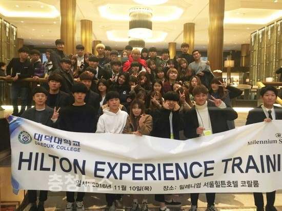대덕대학교(총장 김상인) 호텔관광서비스과는 지난 10일 취업활성화 사업의 일환으로 서울에 위치한 세계적인 체인호텔인 밀레니엄 힐튼호텔 연수를 다녀왔다고 밝혔다.