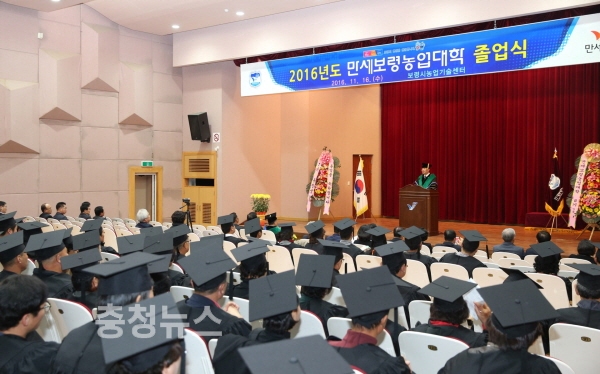 시는 지난 16일 오후 3시 보령시 농업기술센터 농업교육관에서 열린 2016년도 만세보령 농업대학 졸업식은 졸업생과 가족, 관계자 150여 명이 참석한 가운데 학사운영 보고, 졸업증서 수여 및 학업 우수자 시상, 졸업생 인사 순으로 진행했다.