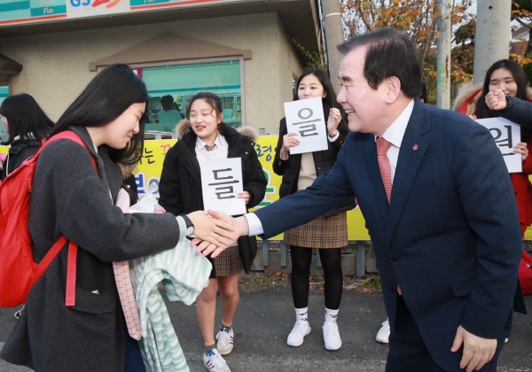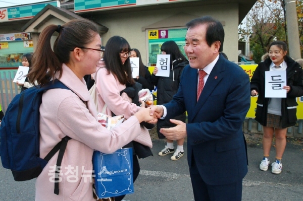 김지철교육감 대천여고에서 수능 수험생 응원 모습