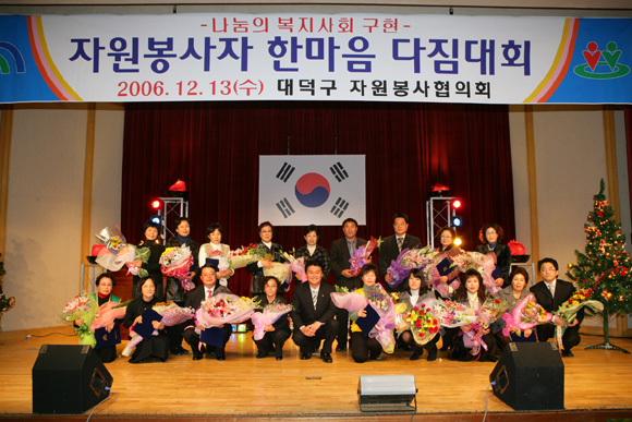 이 날 기념행사는 자원봉사 유공자 표창에 이어 2006 자원봉사 활동상황 상영, 흥겨운 문화공연 마당으로 자원봉사팀별 장기자랑 등이 펼쳐졌으며 특히 한국타이어 직원들로 구성된 한가족 봉사단은 대덕화롯불 모금행사, 이주여성 김장 담그기 활동, 사랑의 집수리 봉사, 장애시설 봉사활동 등을 펼쳐 최우수 봉사단체로 뽑히는 영예를 안았다,