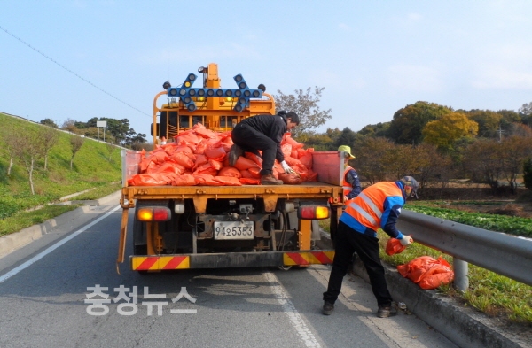 시는 우선 관내 상습 응달지역과 고갯길, 교량 등 취약지역 내 도로결빙을 대비해 설해 위험지역 180개소 102.1㎞를 별도 지정‧관리키로 했으며, 모래적사장 522개소, 1,105㎥와 비닐모래주머니 5만 개를 제작해 설치를 완료했다.