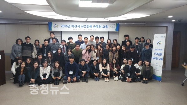 충남 아산시(시장 복기왕)는 11월 16일부터 18일까지 3일간 2016년 신규임용공무원 48명을 대상으로 공직적응 교육을 실시했다.
