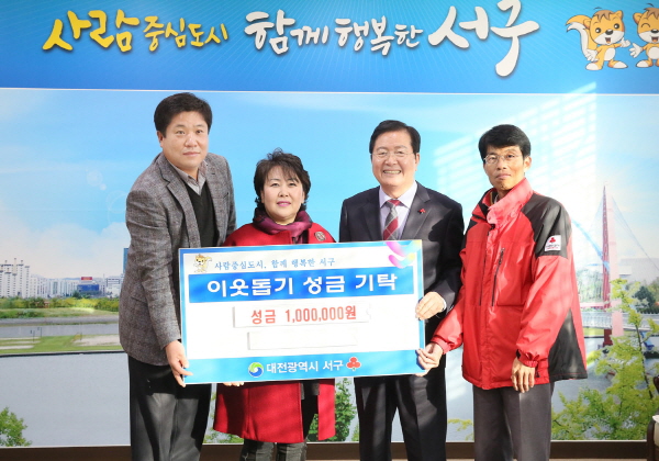 장종태 서구청장은 “어려운 경기 속에서도 지역 주민을 위한 나눔 참여에 감사하다.”라며, “지역 내 소외계층에게 희망을 주는 복지 행정 실현을 위해 더욱 노력하겠다.”고 밝혔다.