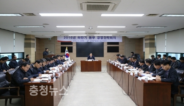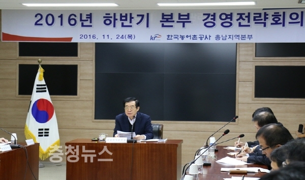 한국농어촌공사 충남지역본부(본부장 김병찬)은 24일 본부 대회의실에서 13개 지사장이 참석한 가운데 2016년 주요업무 추진사항 점검 및 발전적 방안을 모색 하기 위한 하반기 경영전략회의를 개최했다고 밝혔다.
