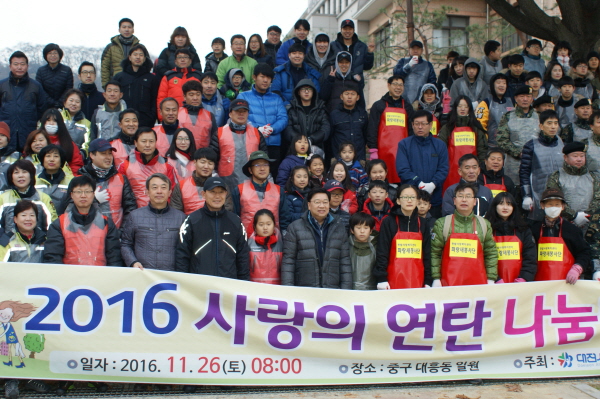 정교순 대전사랑시민협의회 회장을 비롯한 봉사단 150여명이 싸늘한 날씨에도 아랑곳 하지않고 대전 중구 대흥동 일원에서 2016년 '사랑의 연탄 나눔' 봉사활동을 펼쳤다.