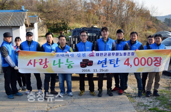 군에 따르면, 노조는 지난 21일 (재)태안군사랑장학회에 장학금 100만원을 기탁한 데 이어, 22~24일 관내 저소득 가정 학생 4명에게 장학금 총 120만원을 전달하고 25일에는 운영위원 20여 명이 관내 어려운 이웃 8가구를 찾아 연탄 총 4천장을 구입·배달하는 등 군민들을 위한 적극적인 봉사에 나서고 있다.
