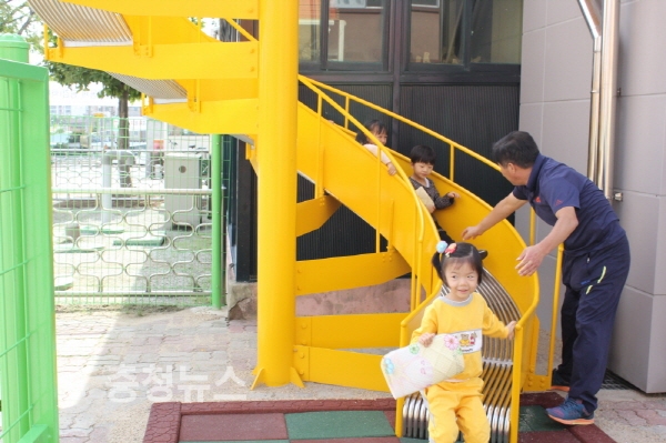 충남교육청, 유치원 불나면 미끄럼틀 타고 대피해요